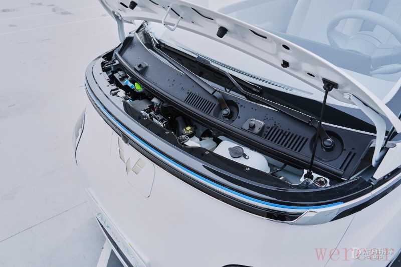 Air ev晴空的双座版本车型搭载了一台30kW的永磁同步电机,最大扭矩110N·m,CLTC工况续航里程达到了300km;本次试驾的四座版,搭载了50kW的永磁同步电机,最大扭矩140N·m,CLTC工况续航里程同样为300km,两者都采用后置后驱的驱动方式。双座和四座车型均装配了磷酸铁锂电池组,电池组容量分别为26.7kWh和28.4kWh。