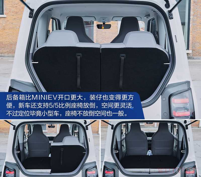 后备箱的开口虽然更大了的,但我感觉还是有点偏小,另外尾门的设计几乎为90度,而新车仅有一米六几的车高,所以尾门的高度还是偏低的,一米八以上的大个子稍不留神就会碰头,如果有办法可以做到角度的调节,相信会对身高各异的消费者更加友好。