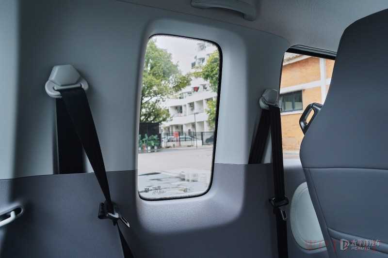 后排的窗户长得很像飞机的舷窗,五菱工程师也说到这个窗户的灵感也是来自于飞机舷窗。相比MINIEV来说,四座版后窗面积的增大,也让后排视野更通透,提升了驾乘舒适性。