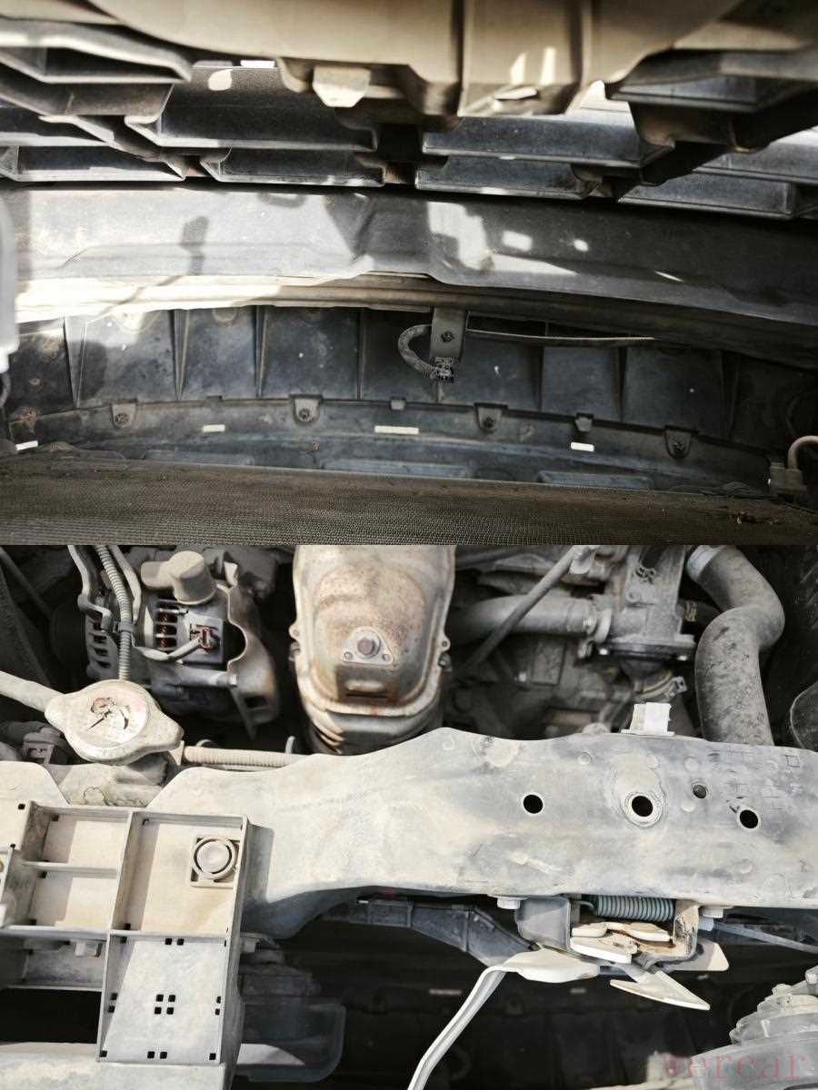 车内金属部件有所腐蚀生锈,但底板没有泥沙水印,地毯没有变色变硬,门槛内部空腔干干净净,确定车辆没有涉水泡水的情况,下一步就该去看底盘了。