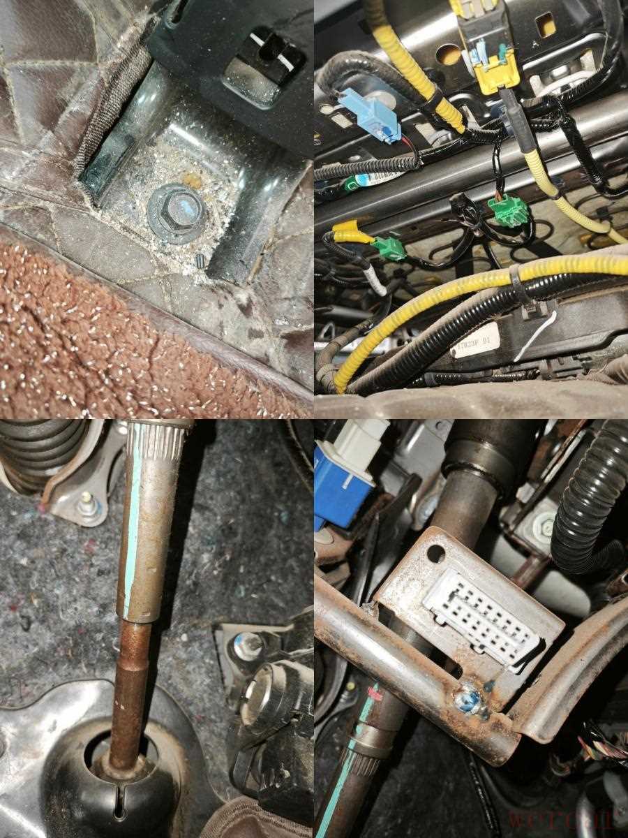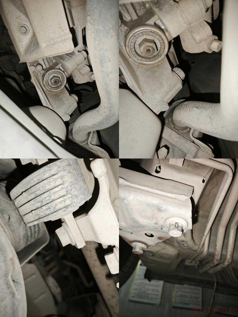 前部方向机和元宝梁有拆装痕迹,估计是维修更换方向机的原因,不拆元宝梁,方向机不好拿出去,跟事故没关系的。