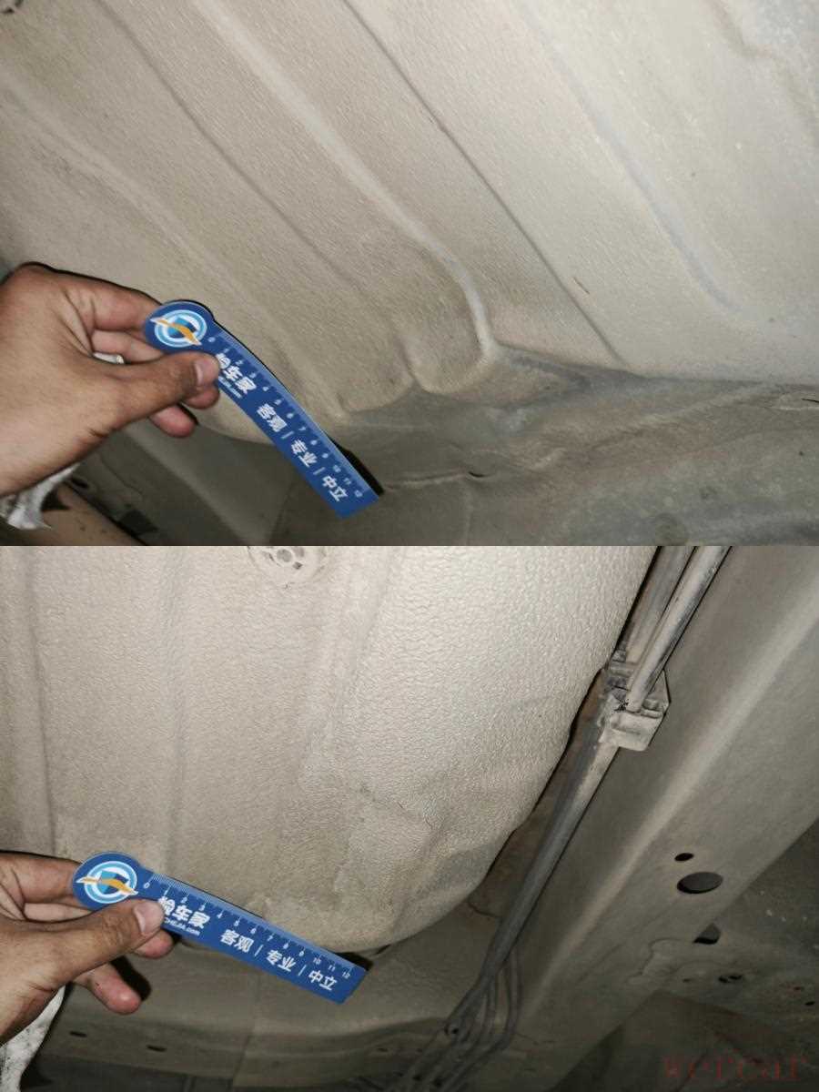 底盘还有托底的情况,车身底板的变形很明显,估计是一块石头顶上去的,只有变形没有破损,最好还是不要维修了,也不影响啥。