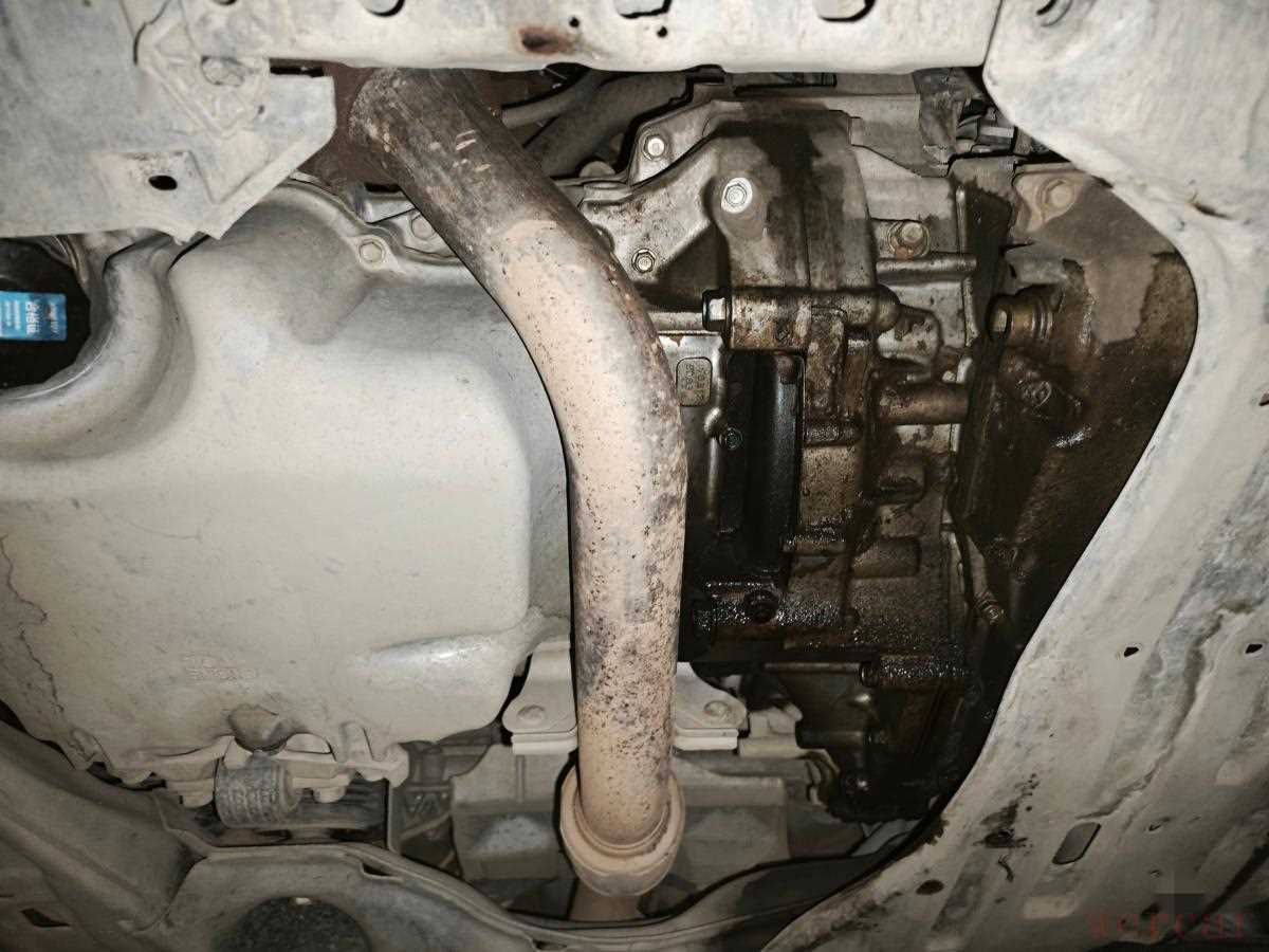 底盘升起来,一眼就看到严重的漏油,大片的油污,这还是本田吗?