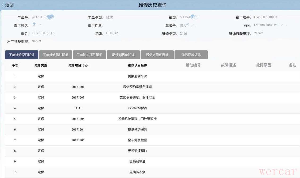 看看这辆车的维保记录,最后一次进4S店是2021年,当时登记的公里数已经是9万多公里了,如今又过了三年时间,预估15万公里不过分吧?对半调,也符合车贩子的一贯标准。