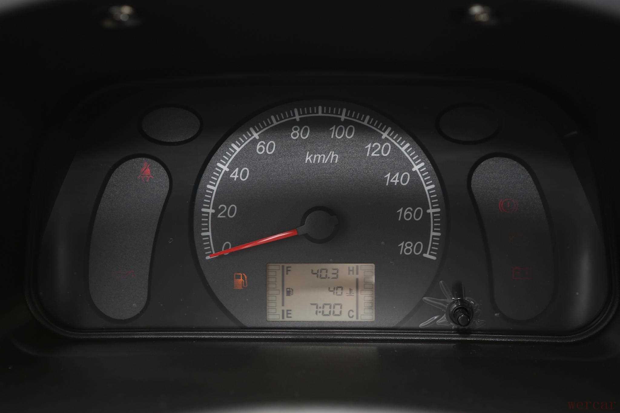 塑料四辐式方向盘,不支持调节和多功能控制。圆环指针仪表盘,下方小屏幕显示,信息很直观。