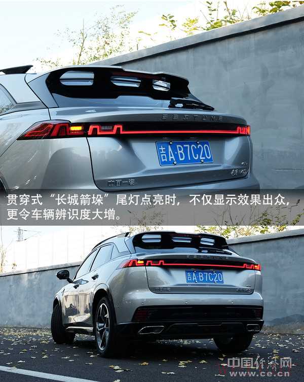 B70S的车尾造型同样不乏亮点。与“战戈”前大灯相呼应,贯穿式“长城箭垛”尾灯设计灵感同样源于中国风,当其点亮时,不仅显示效果出众,更令车辆的辨识度大幅增加,可谓点睛一笔。