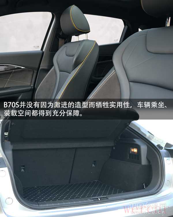 同时值得称道的是,B70S并没有因为激进的造型而牺牲实用性,得益于2750毫米的轴距,车辆乘坐、装载空间都得到充分的保障。车内丰富的储物空间也体现了B70S的体贴,无线充电等功能同样对乘客非常友好。