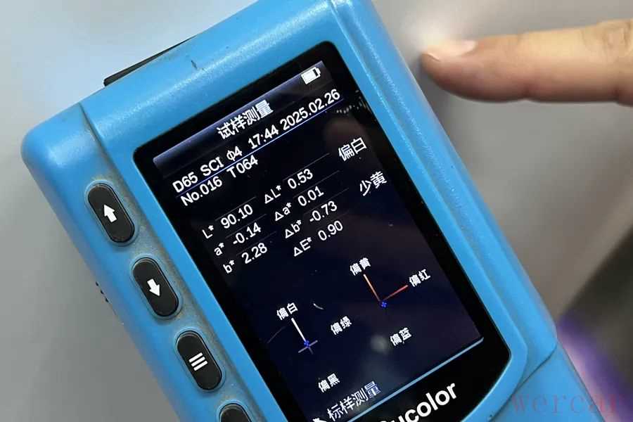 经过测试,最大色差值位于后保险杠色差值为0.90ΔE,比基准点偏白少黄看,这辆车的喷漆质量还可以。