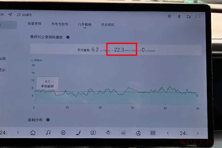 纯电模式下,表显近百公里的平均电耗是22.3千瓦时。