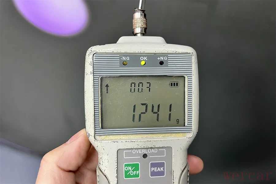 我们在同一路段(地面摩擦力相同),胎压调至厂家标准胎压,使用标准模式,用拉力计原地匀速旋转方向盘90度,取最大数值。