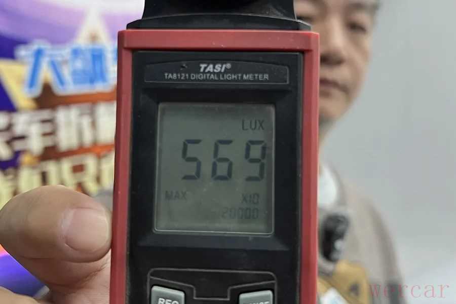 这辆车的大灯是LED大灯,光照度为5690勒克斯,还算可以。
