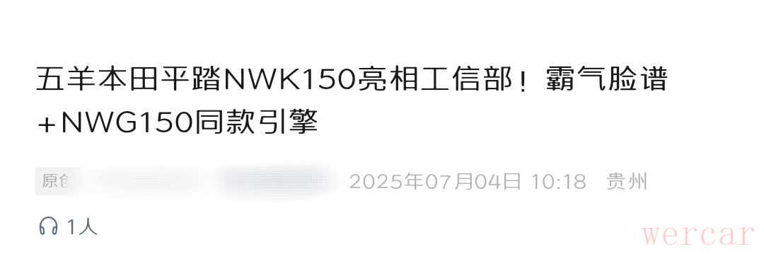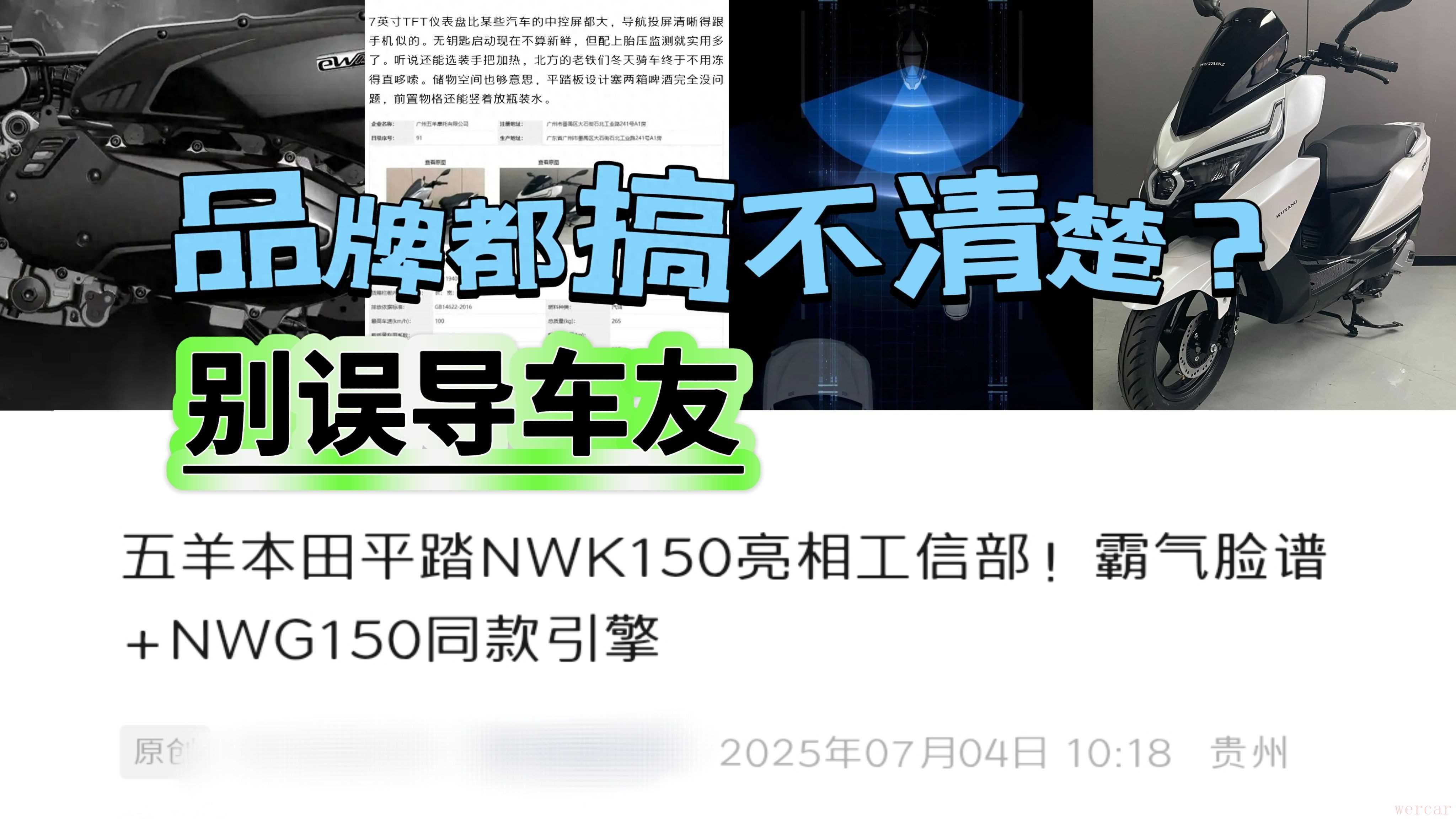 五羊本田即将发布的150平踏板确实热度很高,部分自媒体也是不遗余力的开始博流弄文。如果真的搞不清楚五羊和五羊本田那小编个人还是有兴趣帮你捋捋的,起码不能误导那些不太了解摩托车的车友。那么就拿下面这个标题为《五羊本田平踏MWK150亮相工信部!霸气脸谱+NWG150同款引擎》来说吧!