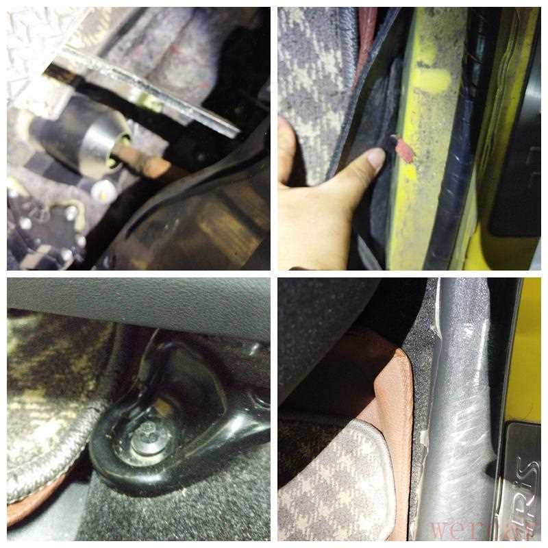 从方向管柱的生锈和地毯下面的尘沙来看,此车似乎进水了!但综合座椅下部角落,门槛缝隙,保险丝盒,OBD插接口,仪表台内部,以及安全带扣扣等边角位置,靓仔确认此车没有泡水,即便内饰进水也只是少量的!
