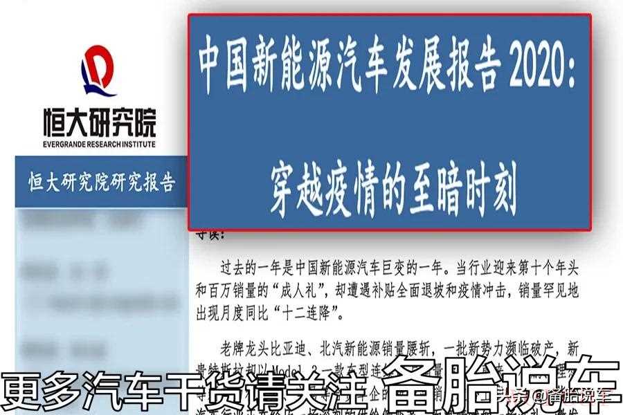恒大研究院发布了一个《中国新能源汽车发展报告2020:穿越疫情的至暗时刻》。