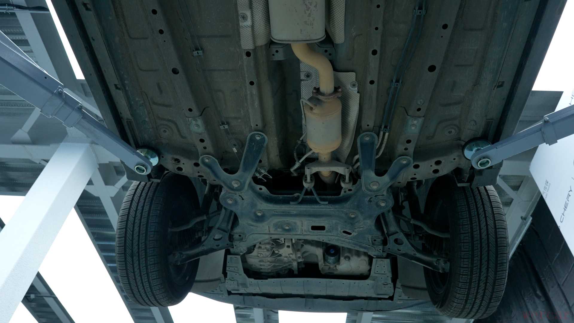 在发动机被拆卸后,我们也获得了近距离观察副车架及机舱结构件的绝佳机会。根据现场中汽研工程师的现场评估,该车副车架无论是结构件还是诸如各类球头衬套等易损件,状态都还很好,不仅说明车主平时非常爱护车辆,没有过度暴力驾驶,更说明奇瑞在零部件的质量上稳定可靠。