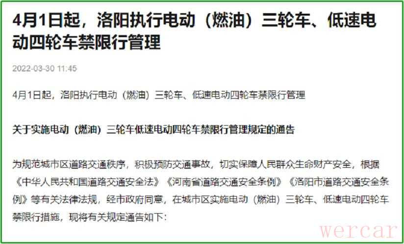 总之,小四轮电动车对于老年人来说,是很好用的代步工具,但是,却有多地,都有对这样车型的禁行措施,比如4月1日起,洛阳实施的禁行管理措施,就包括了低速电动四轮车,而像这样的禁行,之前还有德州、濮阳、济南、驻马店等多地,都有禁行管理。