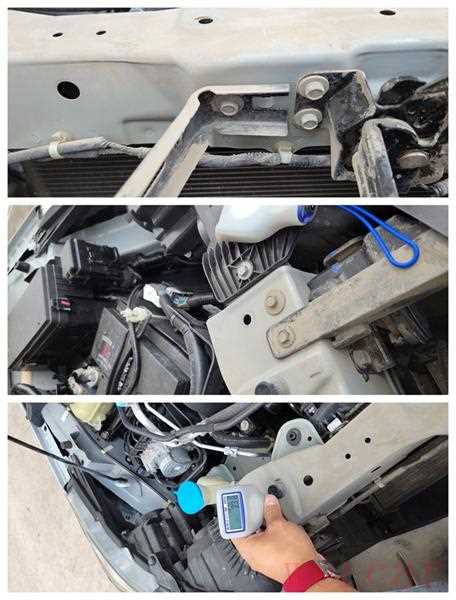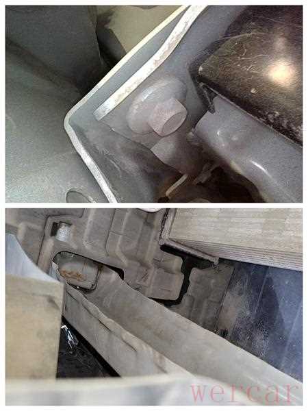 水箱框架下面是前防撞梁,防撞梁的固定螺丝也没动过,但这个防撞梁薄薄的,就一层铁皮,上面还有变形修正的痕迹。说明前面的事故确实不严重,不然这防撞梁不可能保得住。