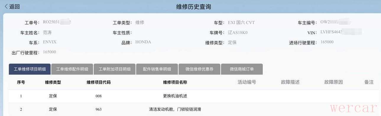 随后也核对了一下维保记录,发现最后一次进店的公里数都有16万公里了,所以这个车确定调表了,而且调的比较狠,行业内一般都是对半调,而这辆享域对半之后再对半!
