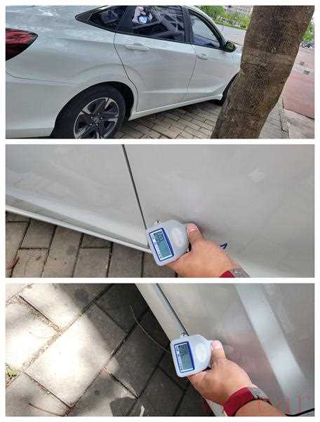 左边车身确实是原版原漆,但C柱有一处地方凹陷变形了,照片看起来可能不明显,但实车看起来很清晰,用尺子量了一下,长度超过了8CM。这点车贩子倒是没有隐瞒,明确告知客户了,可能是不太好瞒过去吧!