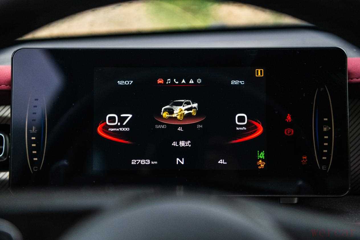 对于初次越野的新手来说,复杂的路况很容易让人手忙脚乱,此时“蠕行模式”便能够派上用场。在该模式下,越野炮可根据路况反馈,自动控制发动机的扭矩输出、分配四轮制动力,实现在越野路面上的“低速巡航”,用户只需观察路况并控制转向即可。这无疑可以极大地降低恶劣路况下的越野难度,给予驾驶者充足的驾驶信心。