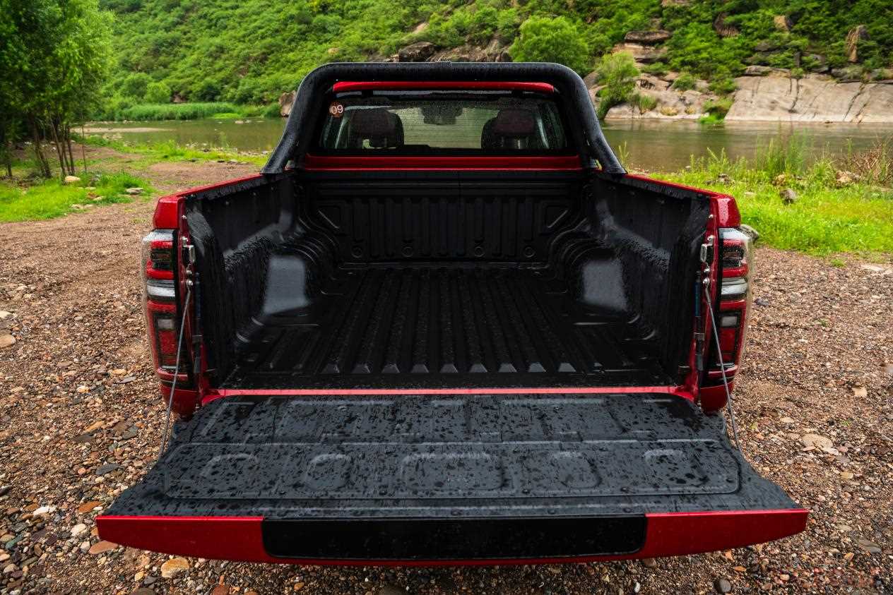 新款越野炮的车尾部分与车头相呼应,同样配备了一个粗壮的铁质熏黑后杠。同时,新车还拥有一个长1520mm,宽1520mm,高540mm的巨大货箱,额定装载质量可达480Kg。