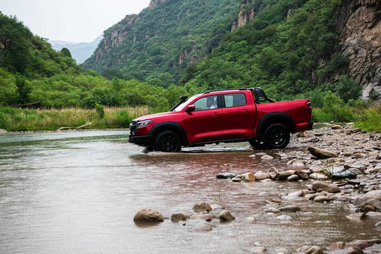 作为硬派越野皮卡,2023款越野炮的接近角为30°,离去角为26°,最小离地间隙228mm,涉水深度可达700mm,有着极佳的道路通过性。结合车辆标配的涉水喉,以及全覆盖式底盘护板,让我可以更加从容地通过涉水路面,或是在碎石滩上尽情奔驰