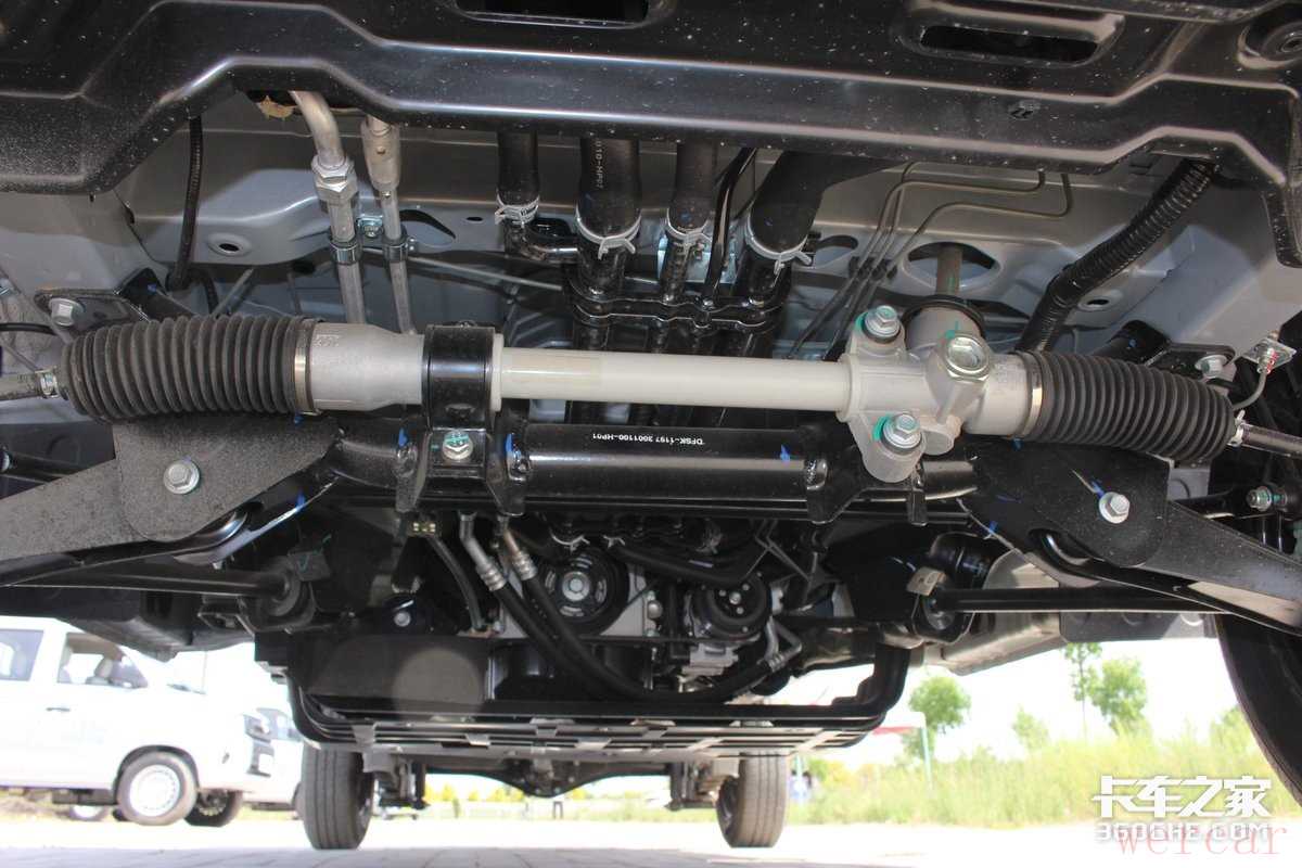 底盘方面,这款小康C71采用一次性冲压的主副双大梁设计,厚度达到251mm,承载能力大大提升。而且该底盘还布置了9根横梁,在能多装的同时,还要保证装得更稳。另外,该车的后悬架采用宽58mm、厚9mm的6片加厚钢板弹簧,再加上63.2mm的后桥、直径200mm的后桥壳体及63.45mm传动轴,满足卡友们多拉快跑的需求。