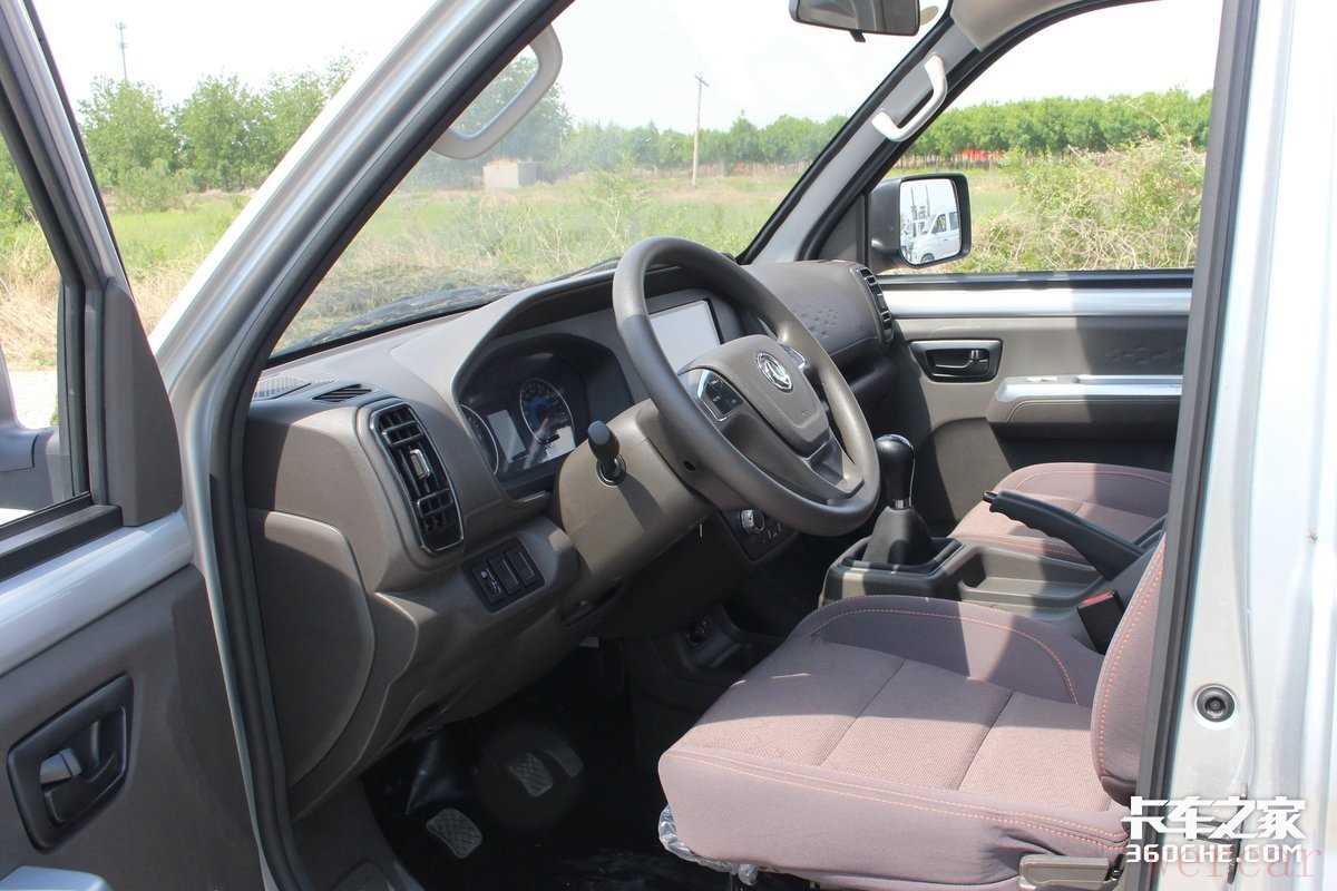 前面也说到了这款小康C71为长车头设计,而且还进行加宽,为1780mm。所以该车有着同类行车中最宽敞的驾乘空间,其内饰空间宽近1.5米,座椅到方向盘有0.28米、到顶棚有1米,可以说1米8身高的驾乘人员坐在里面丝毫不觉得局促。