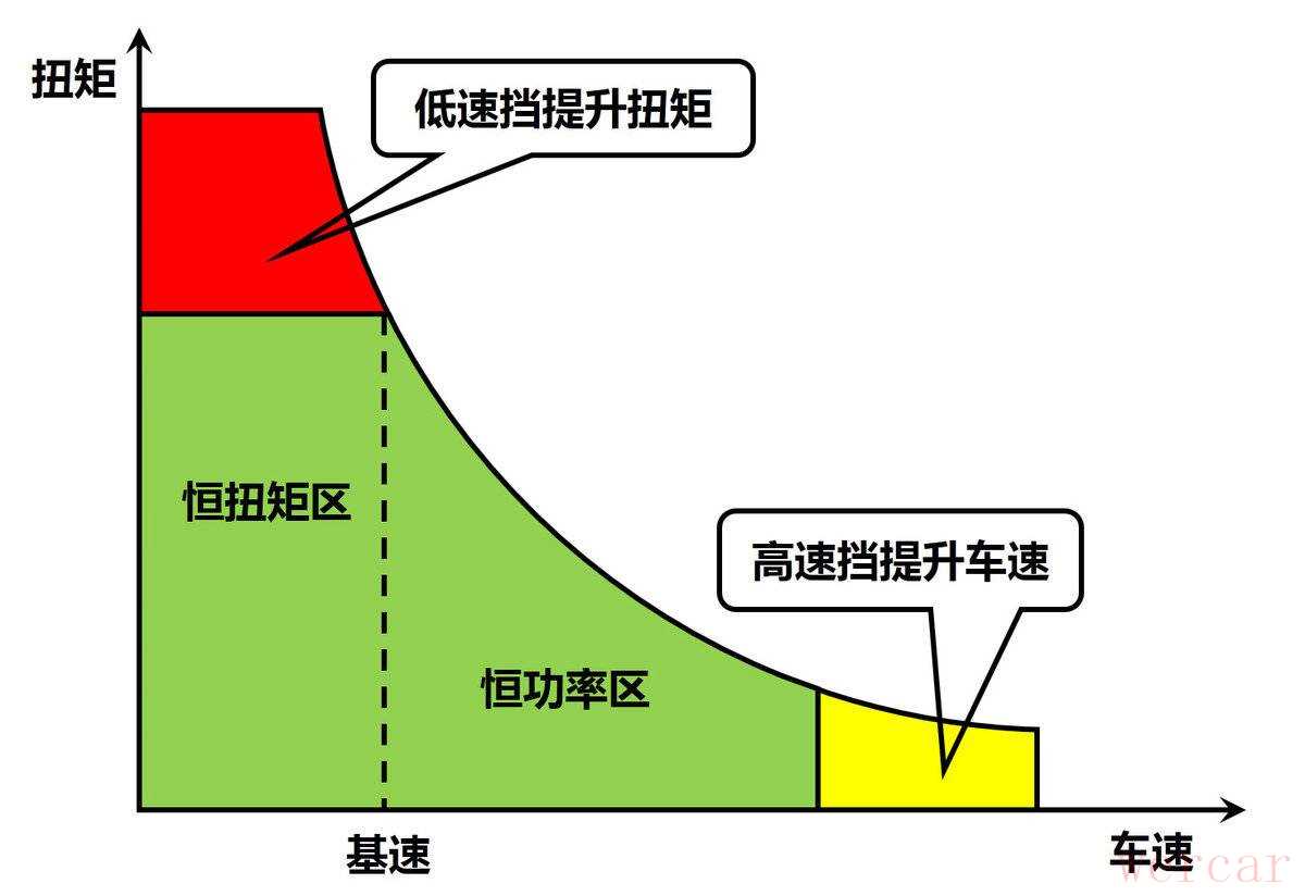 另外一方面,变速箱也可以进一步放大扭矩,给你更爽的起步动力。但考虑到电机其实可以做到功率比较大,扭矩比较大,且车用电机很多都自带一个“变速箱”,咱们就不把它当做主要原因了。