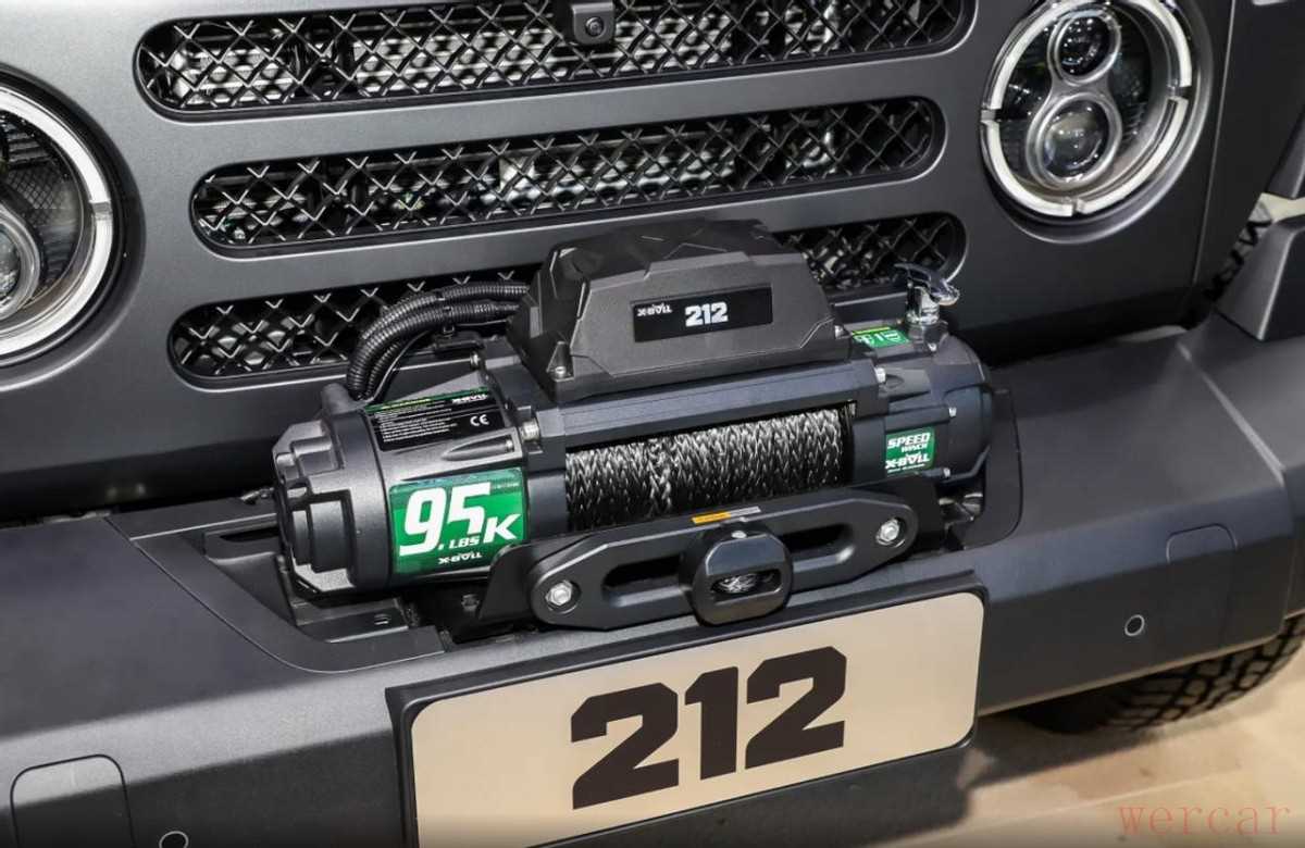对于越野玩家,212官方提供了原厂的越野选装包,内含AT全地形轮胎、氮气减震器、12000磅电动绞盘。氮气减震器耐高温、性能更稳定,电动绞盘则是越野玩家的必备品,陷车或者救援都可以派上用场,这些配置一步到位,省去后期改装的烦恼与潜在风险。