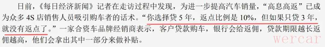也就是说,我们贷款10万,4S店会补给我们1万的返点。