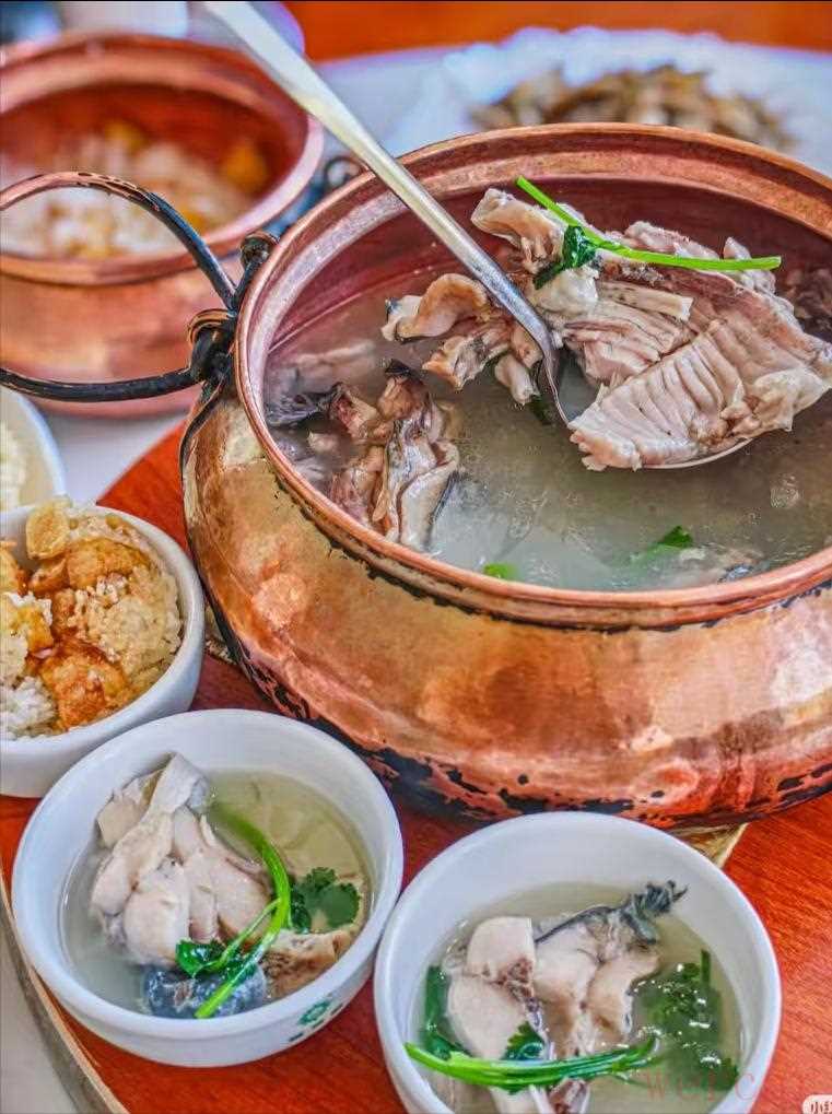 不过这儿的餐饮比以前规范多了,不像以前乱要价,想吃铜锅鱼得找对地方,景区里的店都差不多,不如去村里的归心园鱼庄,本地人常去的店,鱼是现捞的,用铜锅煮出来汤是奶白色,鲜得很,配着洋芋饭吃,锅底的锅巴酥脆可口,这才叫接地气。