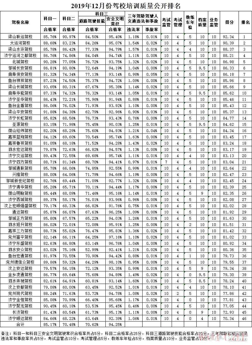 济宁最新驾校排名揭晓,后三位驾校名单新鲜出炉!