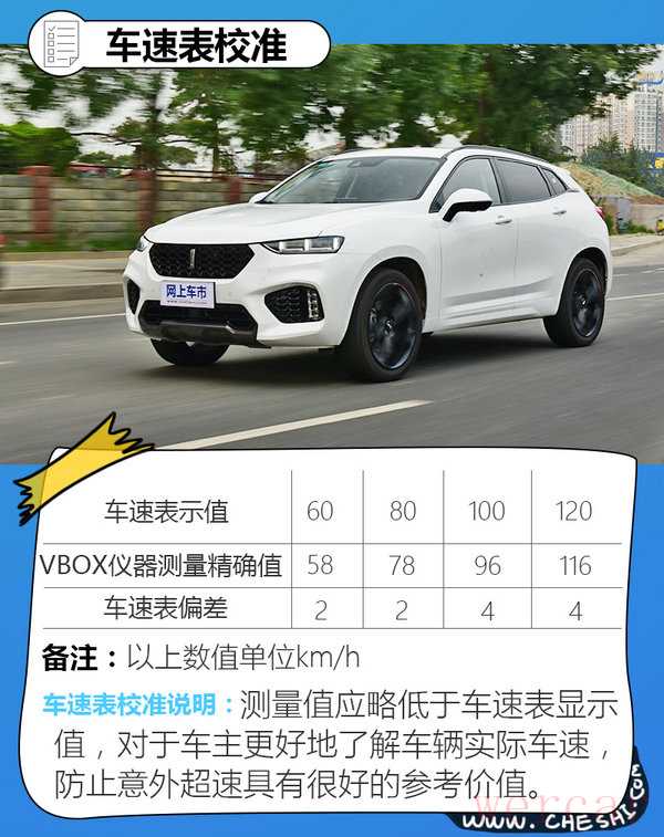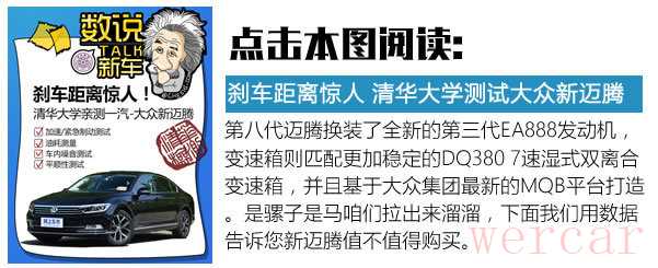 利用高精度的GPS我们可以对WEY VV7s的表显车速和实际车速进行比对,数据显示这辆测试车在中低速时车速表误差较小,仅为2km/h,高速时误差上升至4km/h。车速表误差好不好?有一定误差可以帮助驾驶员控制车速,减少超速风险,所以一般家用轿车都会在速度表留有一定余量。本次测试的WEY VV7s车速误差和我们之前测试的大众新迈腾处于同等水平。想了解之前对新迈腾的测试数据,请点击下图: