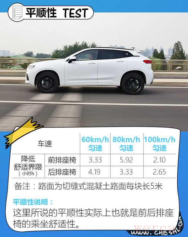 从专业仪器测试的数据显示,WEY VV7s前后排乘坐舒适性并没有想象中那么出色,特别是在60km/h情况下,前排座椅的乘坐舒适性表现一般,同时值得注意的是,速度提升到80km/h时,前排座椅舒适性最佳,而随着速度的继续提升,前后排乘坐舒适性都所降低。在实际乘坐体验中可以感受到,WEY VV7s所配备真皮座椅走宽松路线,前排座椅侧翼具有一定的包裹性,后排座椅则无论是椅垫还是靠背都较为平直。
