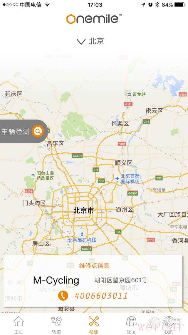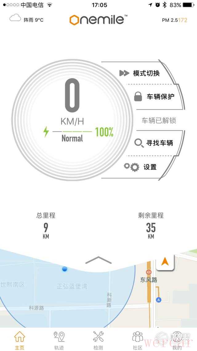 忘记给大家展示连接APP以后的功能了,首先可以通过扫描车身的二维码绑定单车,然后可以检测单车的状态,操控单车的车灯、喇叭,切换骑行模式,导航轨迹,电车保护和定位防盗等,正如一英里的创始人于林先生说的,最好的防盗措施还是随身携带。