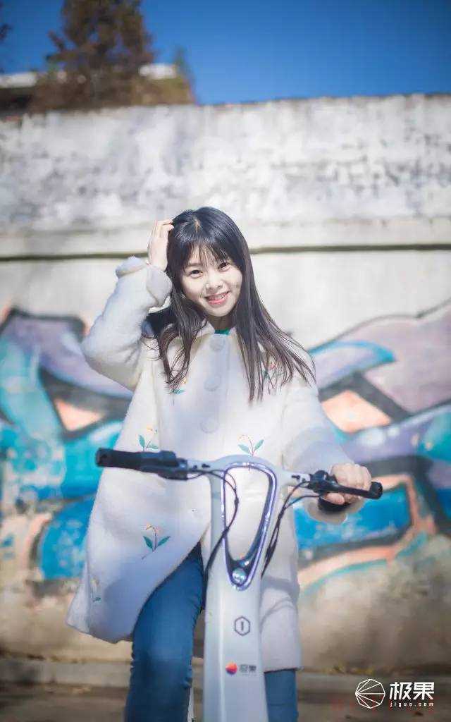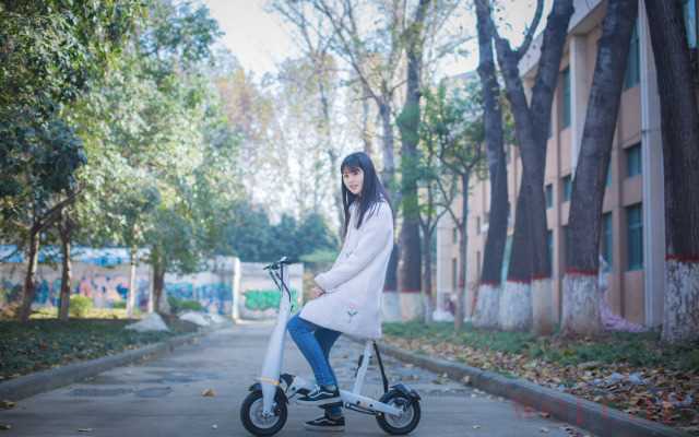 首先作为一个软妹纸,一个人拿起这个还是有点吃力的,不过骑上去确实还是很舒适的。接下来带着光环电动车找到了这个正在读大三的软妹纸,名副其实的哦。郑州刚下过一场大雪,这是大雪过后的第三天,天气还不错,在软妹纸的学校里我给软妹纸和“光环”拍了一组照片,妹纸第一眼看到这个车的时候,就说了一句“这车好漂酿啊!”