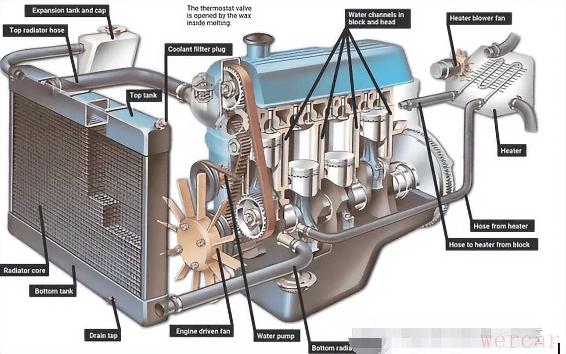 燃料供给系由空气供给系统、燃油供给系统和电子控制系统组成。燃料供给系的功用是根据发动机的要求,配制出一定数量和浓度的混合气,供入气缸,并将燃烧后的废气从气缸内排出到大气中去。起动系:主要由蓄电池、起动控制与传动机构和起动机等组成。将蓄电池的电能转换成机械能,启动发动机运转。冷却系:发动机的工作温度对于发动机的工作性能至关重要。冷却系统主要由水泵、散热器、风扇、水套和节温器等组成。将受热零件吸收的部分热量及时散发出去,保证发动机在最适宜的温度状态下工作。