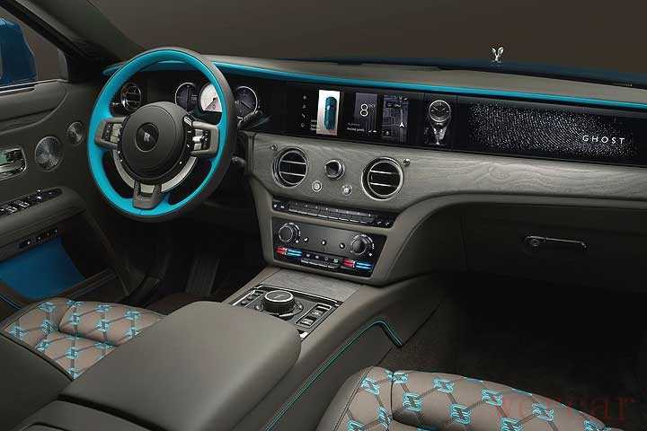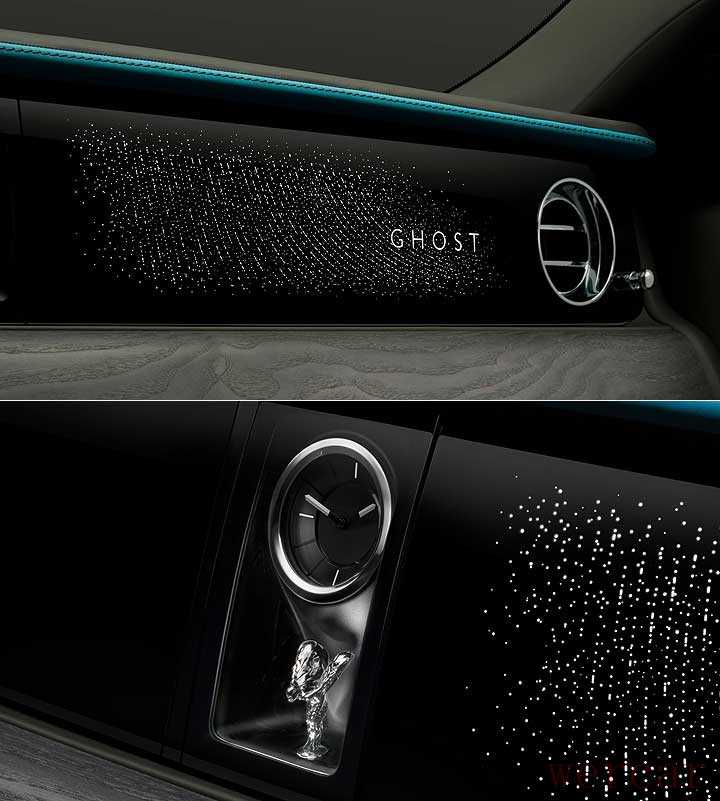 座舱内,小改款 Ghost Series II 车系则是更为强调「自驾适性」,除了可以让准车主依照个人喜好去订制数位仪表的配色,且在镶于中控台内的时钟下方,设计了可展示欢庆女神的橱窗,且副驾驶前方提供了星空仪表的选配。