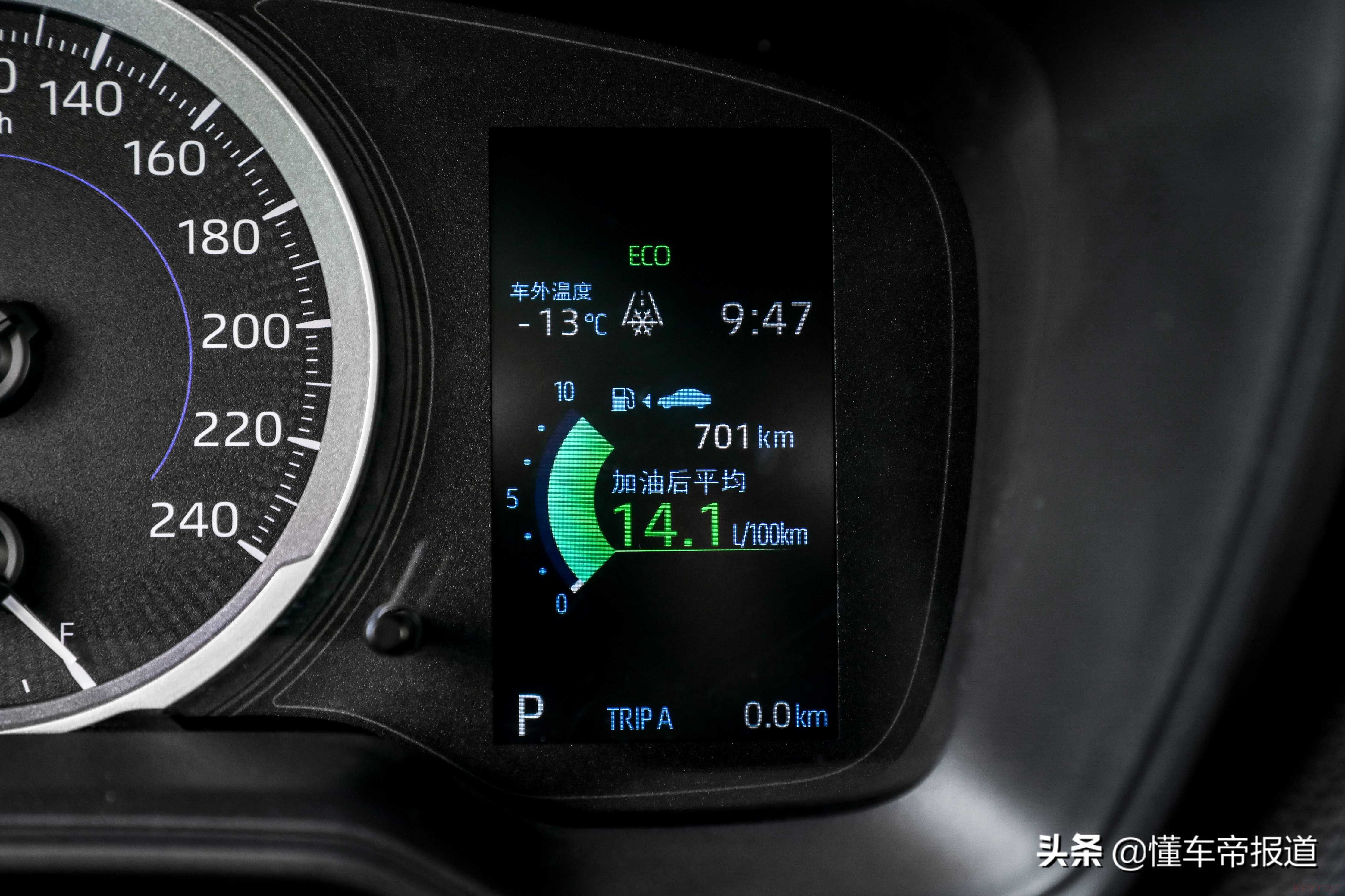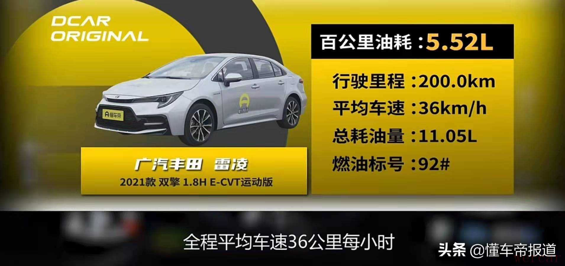 当然,这样的成绩并不足以作为参考。结合我们懂车帝App实测来看,在北京城市道路行驶,且室外平均气温27度,车内空调调节至24度自动,驾驶模式选择自动的情况下,雷凌双擎最终的成绩为5.52升/100公里,相比我们测试的4.1升/100公里要明显高出不少。