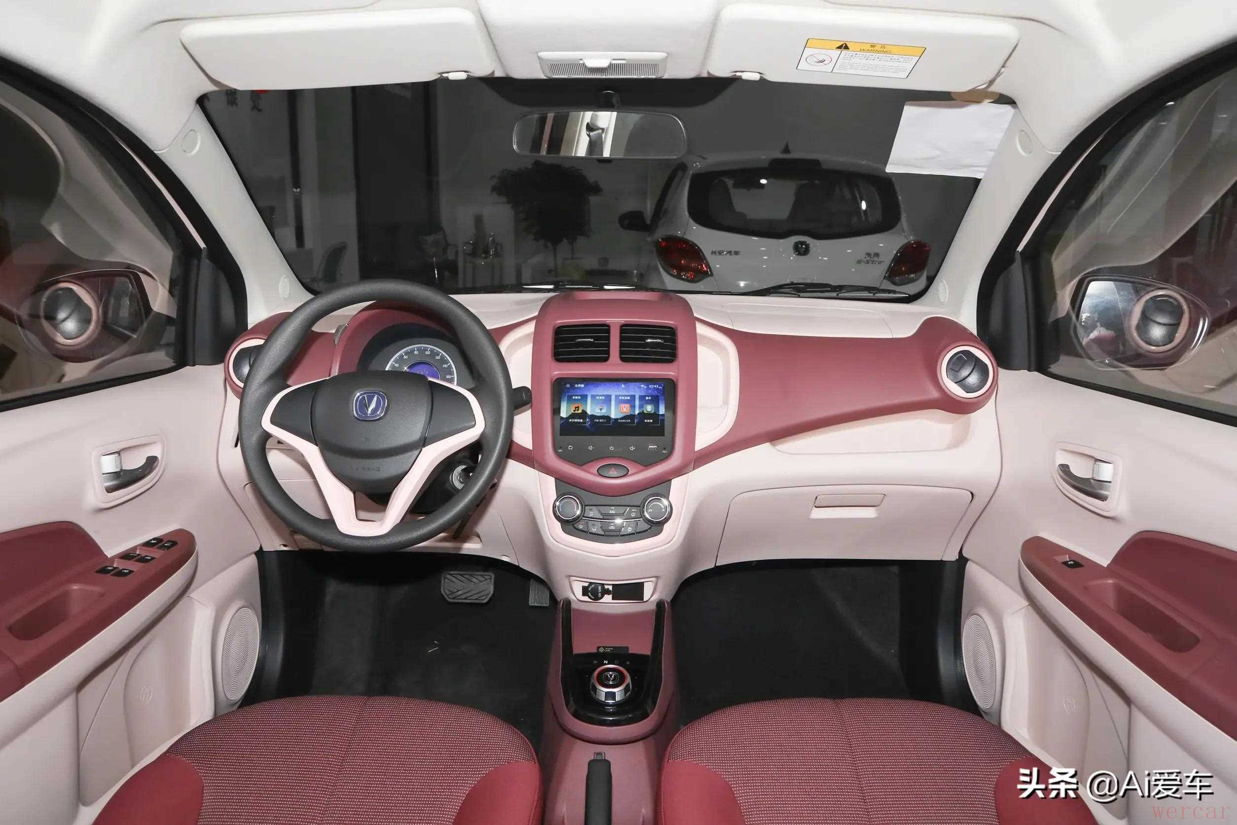 长安奔奔E-Star 2022款 国民版 多彩款版本车内淡淡粉色与深红撞色,视觉上形成强烈反差。对称式中控台上,设计很多储物盒子,还挺实用的。矩形和圆形的空调出风口,起到不错的装饰作用。7英寸液晶屏幕,标配了车载蓝牙、原厂手机互联映射、主安全气囊、胎压报警、后驻车雷达、倒车影像、远程启动等。