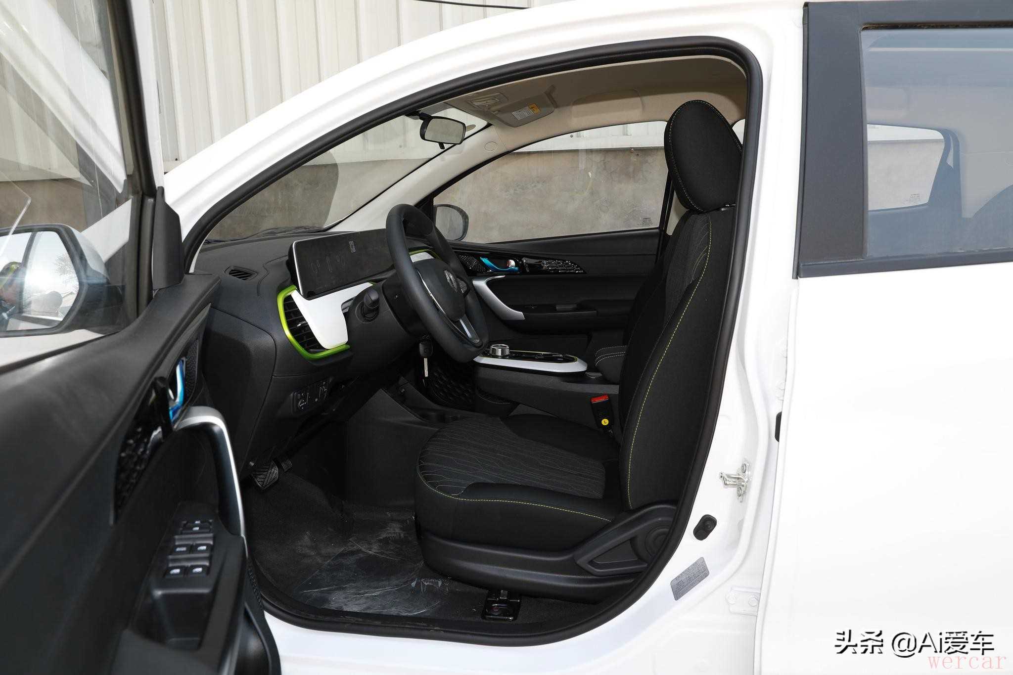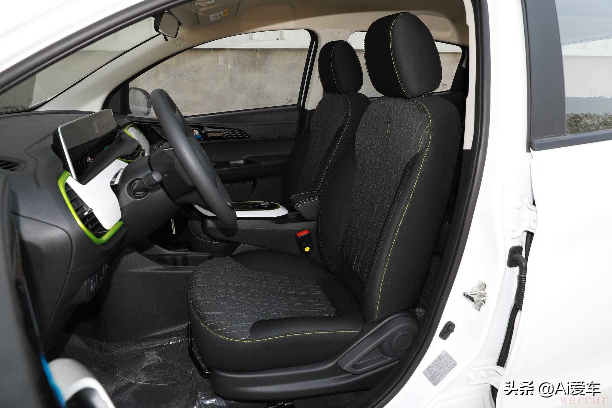 奔奔E-Star 2020款 心悦版 三元锂版本座舱织物座椅,绿色纹理覆盖起到很好装饰效果,座椅也很厚实,主副驾驶位前后移动和靠背调节都有,配置实用中央扶手用起来很惬意,整体乘坐感受很棒。
