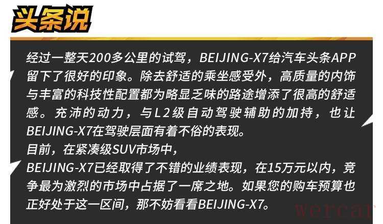 5. "整体驾驶感受":BEIJING汽车的整体驾驶感受取决于多种因素,包括车辆的设计、性能、舒适性和安全性等。一些驾驶者可能会更倾向于驾驶性能出色的车型,而另一些则可能更看重乘坐舒适度。