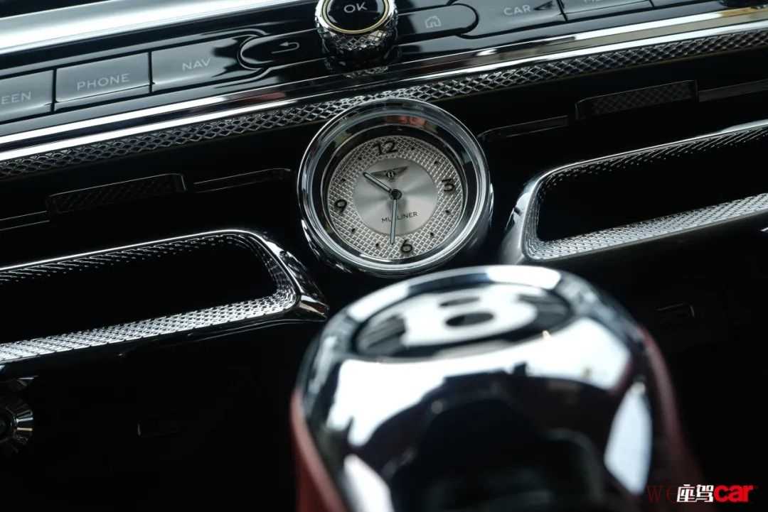 位于仪表台中部的MULLINER车载时钟采用精妙绝伦的拉丝银材质,两侧配以镀铬牛眼式出风口。