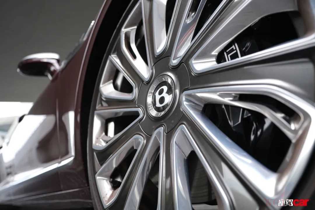 当一台喷涂皇室红色的飞驰MULLINER版缓缓驶到我的面前时,我才真切感受到它无比和谐的外表下隐藏着的威严气场。这台飞驰并未选择使用全新引入的炫黑套件,而是继续采用全车亮面镀铬饰件。不过,随着飞驰的用户群体年龄越来越低,我想个性化的炫黑套件未来也会更多地出现在飞驰上,它会让这台大型超豪华行政级轿车在威严气场的基础上更多添了一份神秘与深邃。相较于普通版飞驰MULLINER后视镜盖普遍采用的哑光银色,炫黑套件则采用了鲸鱼黑色。标志性的MULLINER矩阵式侧通风口同样配以黑色,并饰以亮面”Mulliner”专属字样。采用3D造型设计的散热器格栅与下保险杠格栅保持黑色设计,前者还辅以亮面镶边。另外,宾利汽车标志性双飞翼“B”字徽标同样以黑色示人。随炫黑套件引入的22英寸MULLINER专属轮毂则提供两种选配规格,其中亮黑设计款配以镶有镀铬环的自正式徽标,无论行驶速度几何,“B”都永远屹立在那里,仿佛在向外界娓娓讲述自己的故事。