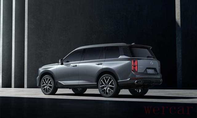 车身侧面,传祺GS8延续了之前的硬朗风格,有着平直的车顶、腰线,以及宽大的前后轮拱和下包围,同时为了提升时尚气息,新车还使用上了悬浮式车顶,通过黑色D柱让整个车身侧面看起来更具活力,再辅以造型特别帅气的双五福轮圈和车尾那造型简洁但内部结构却十分精致的竖型尾灯,另外下部还有造型立体感十足的后包围和双边共两出的尾排,整个车身外观流露出的气场比现款车型更胜一筹,比汉兰达、途观L也是有过之无不及。