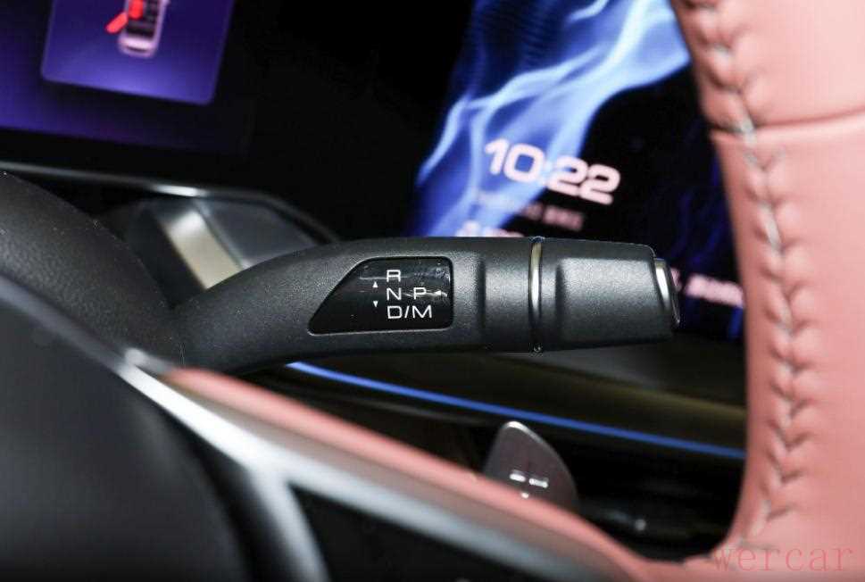 神兽中空的操作台也是简约风格,只有一键启动和双闪报警两个按键,旁边是杯架和无线充电面板,都是比较顺手的位置。之所以这么简洁是因为它换挡杆挪到了方向盘下,采用了怀挡的设计,怀挡一般都是在一些豪华车型上像奔驰、特斯拉上才有,这一点上神兽还是比较大胆的,同时放在这个价位上也比较有新意。