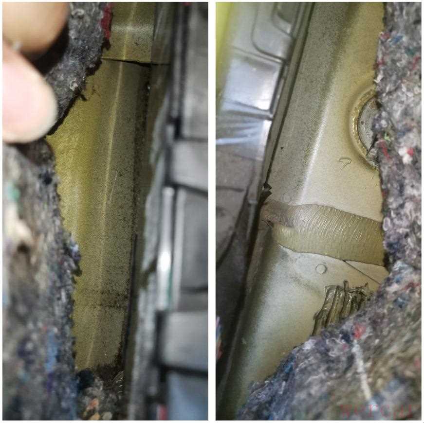 扒开地毯,左右两侧地毯下面都非常的干净,没有泥沙、水痕和水泡后发霉发硬的现象,通过内窥镜观察四门空腔内部也没有发现水泡痕迹,所以水泡的可能性可以排除了。