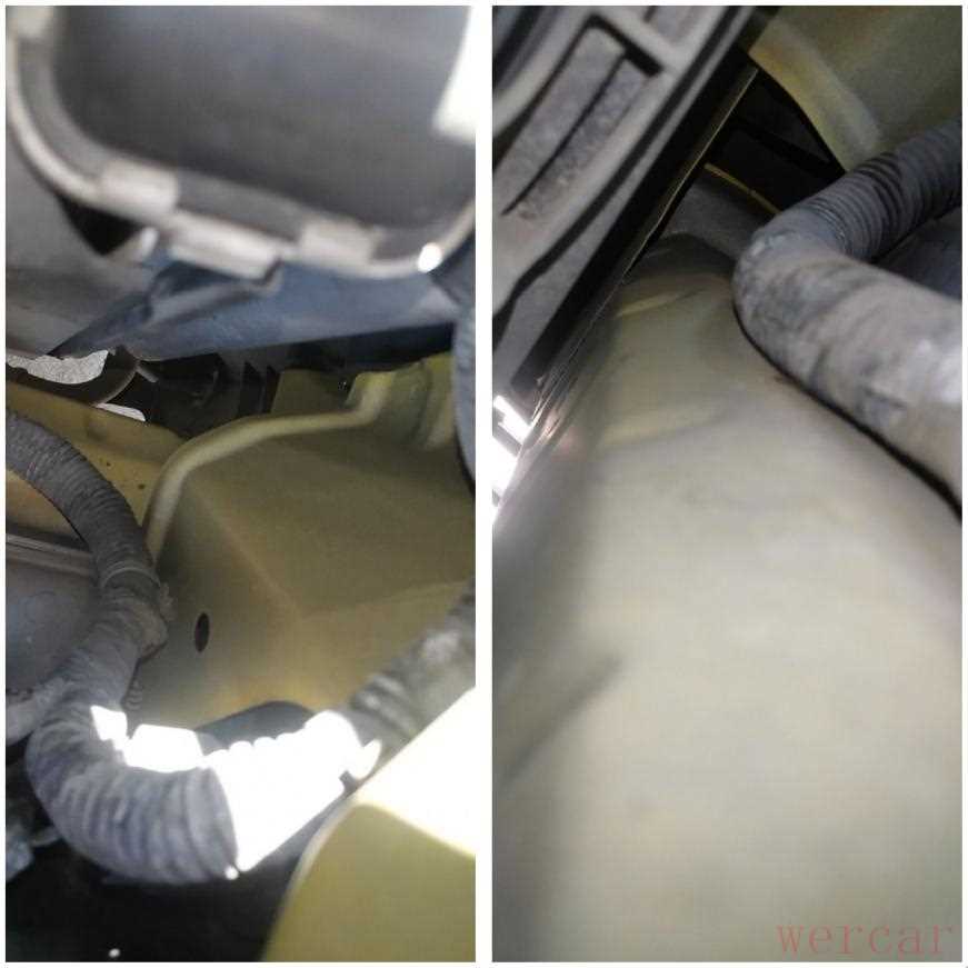 水箱框架螺丝没有动过,排查前脸结构件都没啥问题,这样看来车头部分应该也没有什么大的碰撞。不过旁边的雨刮水壶盖是都搞丢了,如果介意的话粉丝大哥得自己去配一个了。