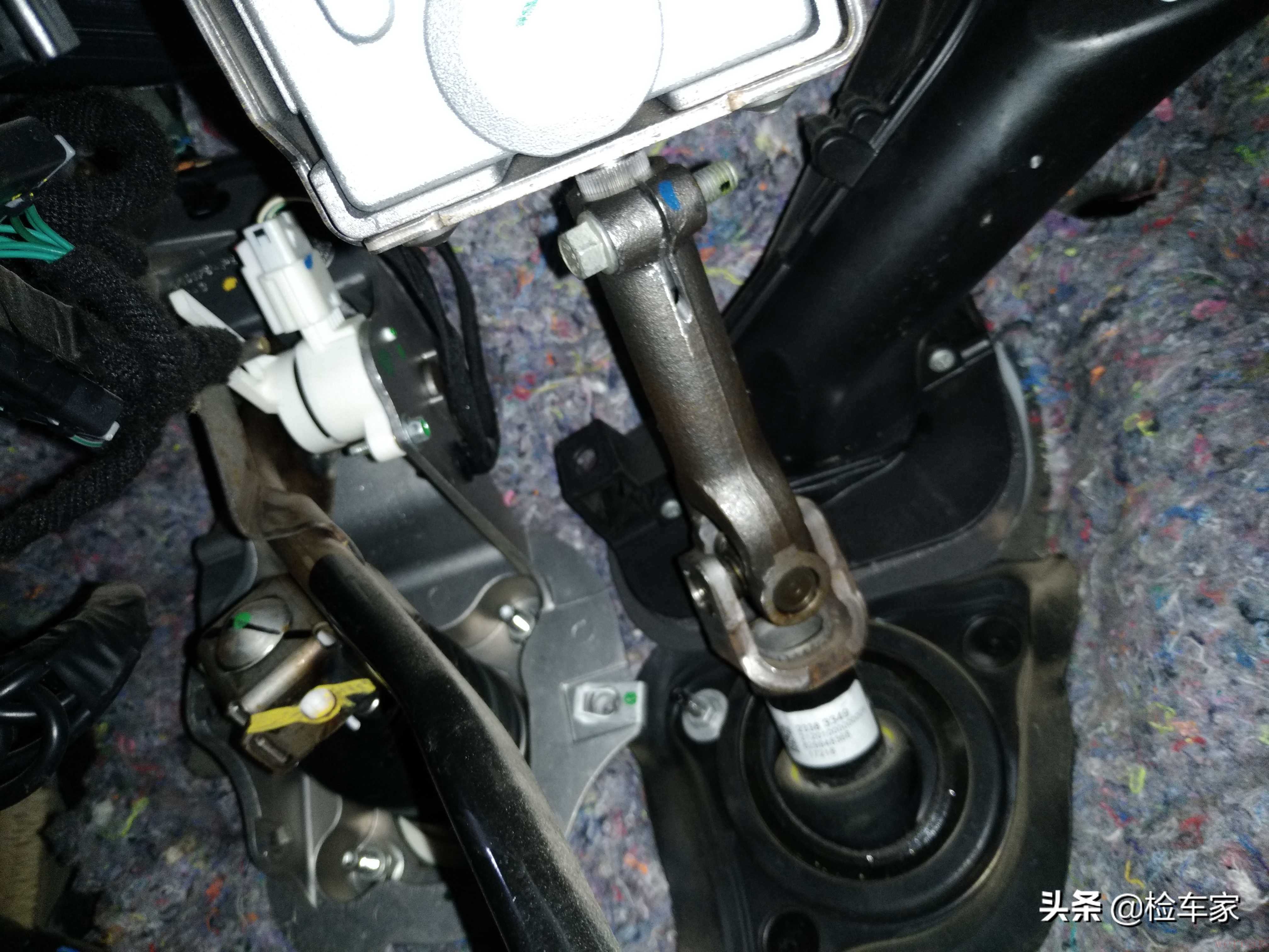 方向管柱没有锈蚀痕迹,刹车油门踏板正常。这个时候,客户阿虎出现了,我问他去哪里了,他说着急上大厕就没跟我打招呼。我把左前事故跟他说了一下,阿虎眼神暗淡了一下,随即又说:这车改装的让我觉得挺舒服的,再看看吧!